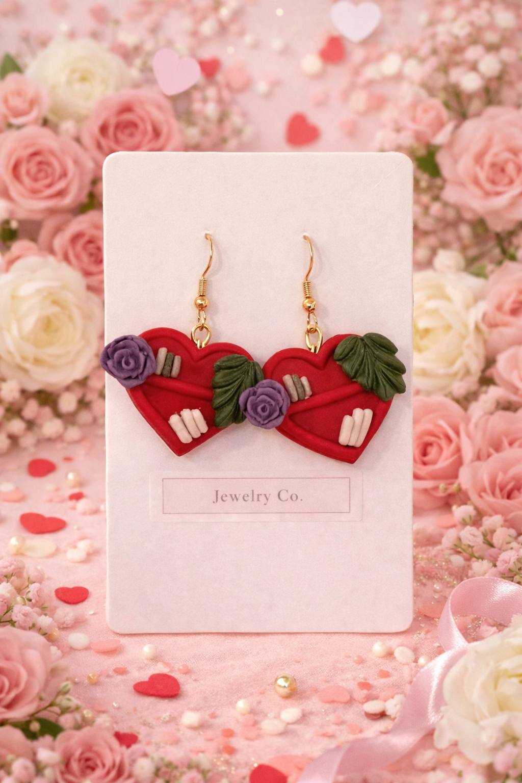 Fall head over heels for The Love Story — a whimsical nod to romance novels, cozy bookshelves, and timeless love stories. These handcrafted earrings feature bold red hearts designed as tiny book-filled shelves, accented with delicate floral details for a soft, romantic finish.