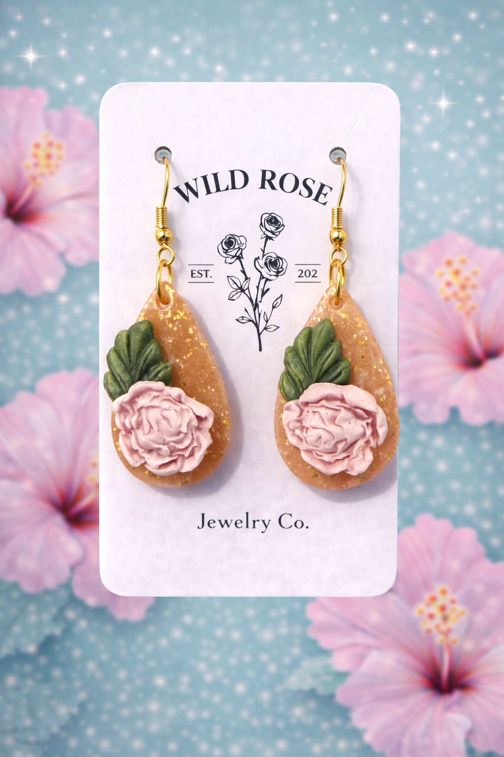 Soft pink florals bloom on a peachy teardrop, creating a sweet and delicate aesthetic. The Primrose is your go-to for spring outfits, soft neutrals, and gentle feminine style.