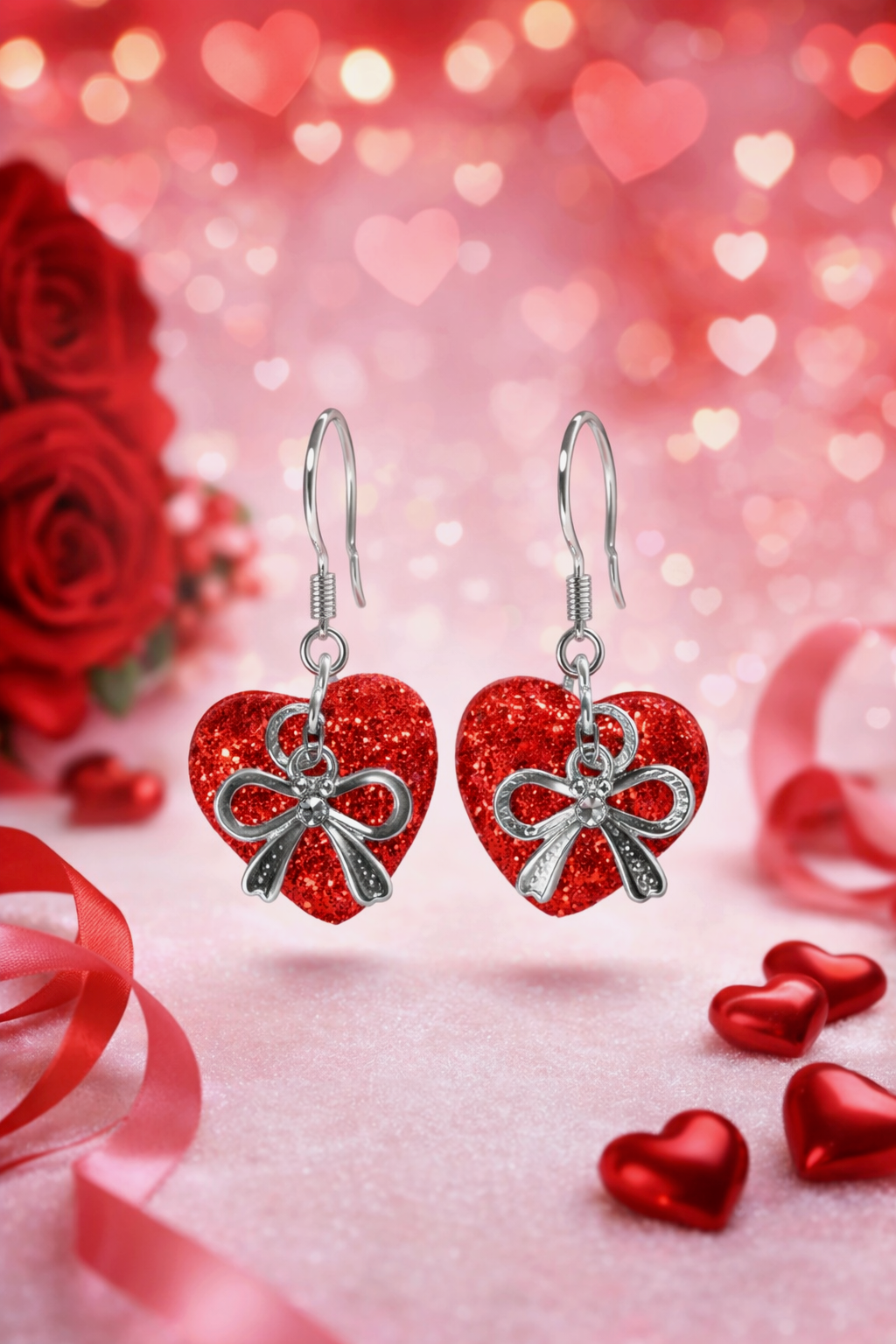 Add a touch of sparkle and romance with these dazzling red heart earrings, finished with silver-plated findings and a delicate bow detail.Festive, lightweight and eye-catching, they're perfect for Valentines Day or anytime you want a little extra love in your look.